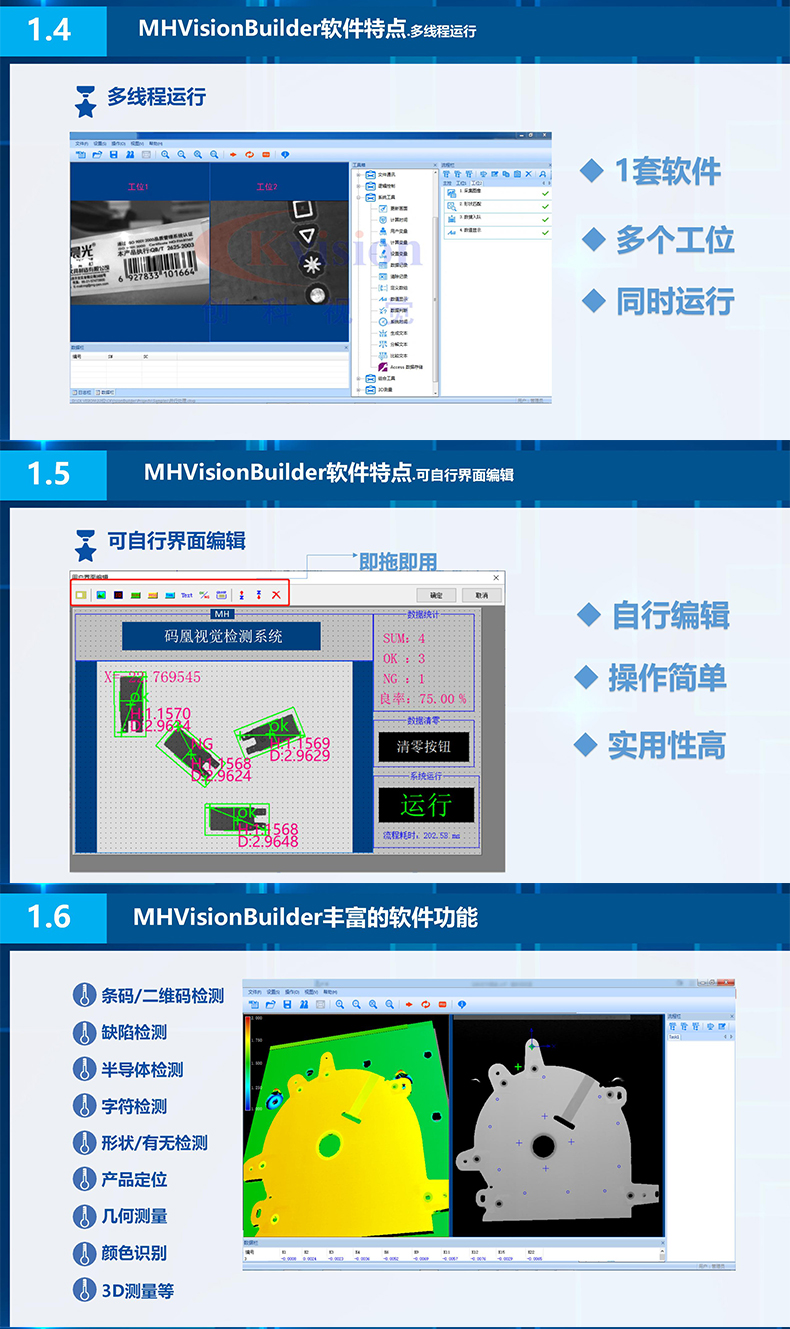 不用編程,用戶可開發(fā)算法工具,可用于數(shù)據(jù)分析,支持多相機同時運行,適用于多種行業(yè)